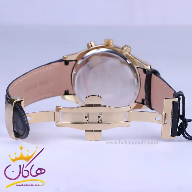 ساعت عقربه ای الگانس مردانه بند چرم مشکی قاب طلایی G 2097/7