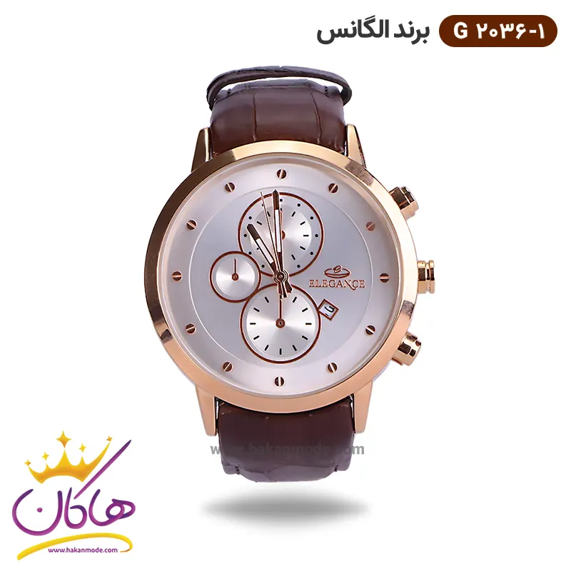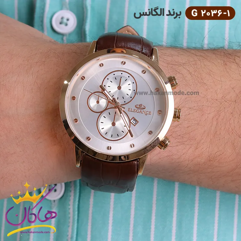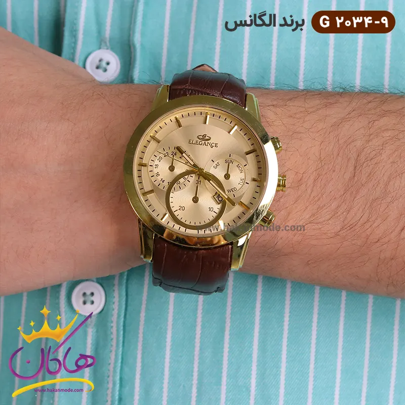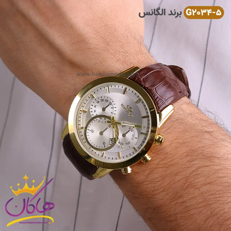 خرید ساعت الگانس مردانه بند چرمی قهوه ای G2034/9 در خرید ساعت الگانس مردانه بند چرم، توجه داشته باشید که