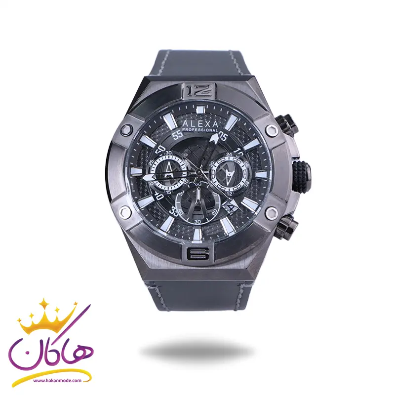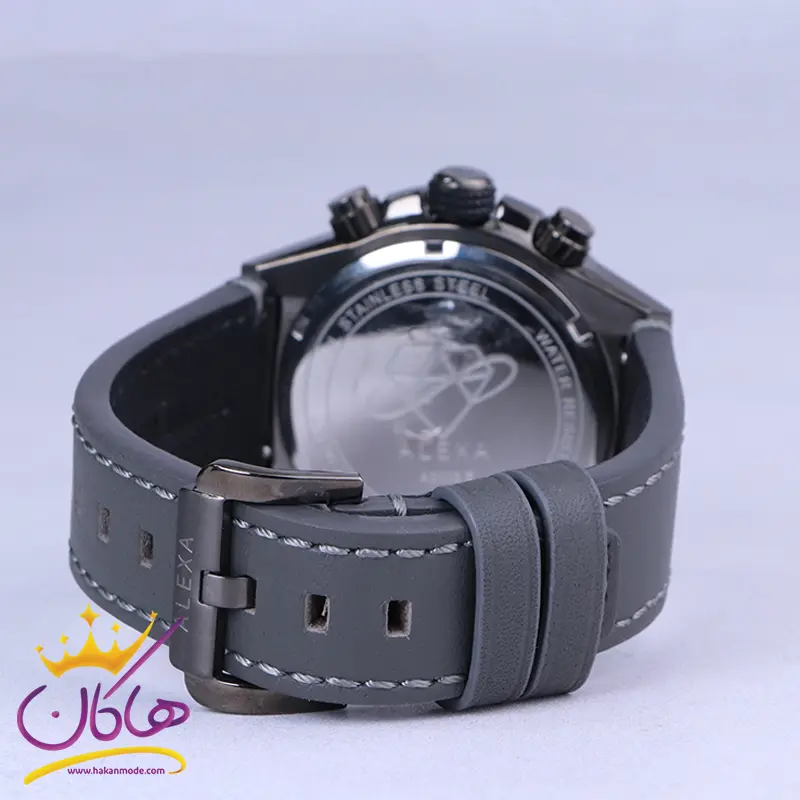 ساعت مچی الکسا مردانه بند چرم طوسی کرنوگراف 3008/3
