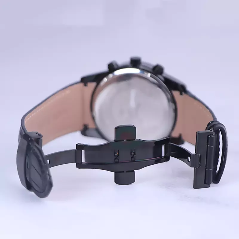 ساعت کرست مردانه بند چرمی مشکی دو زمانه کد 6215/1