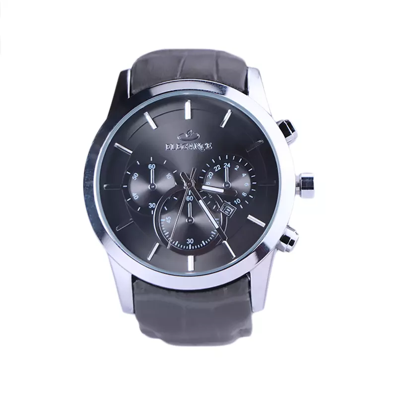 ساعت مچی الگانس مردانه بند چرم طوسی قاب نقره ای G 1191/1