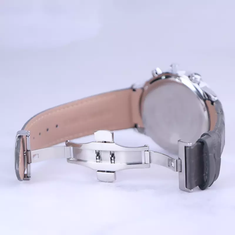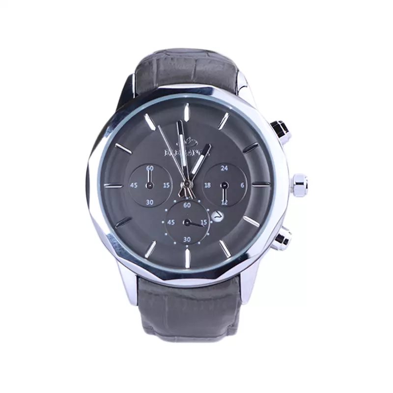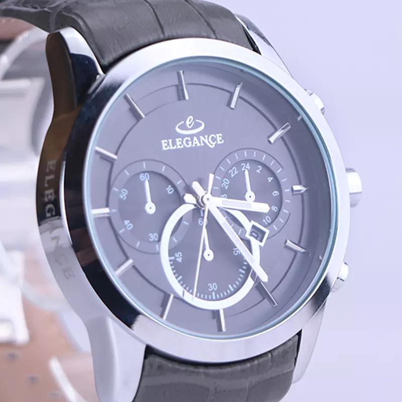 ساعت مچی الگانس مردانه بند چرم طوسی قاب نقره ای G 1196/7