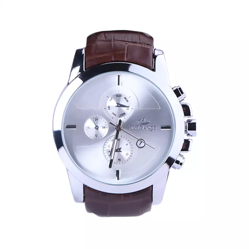 ساعت مچی الگانس مردانه بند چرم قهوه ای قاب نقره ای G 1203/2