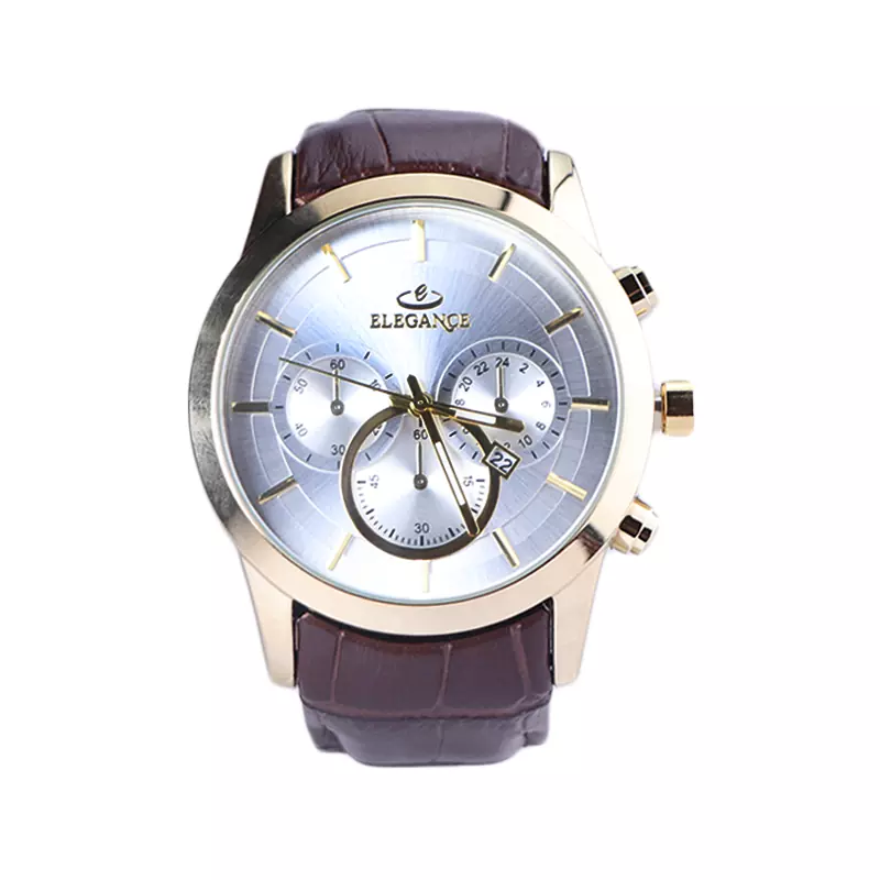 ساعت مچی الگانس مردانه بند چرم قهوه ای قاب طلایی G 1196/3