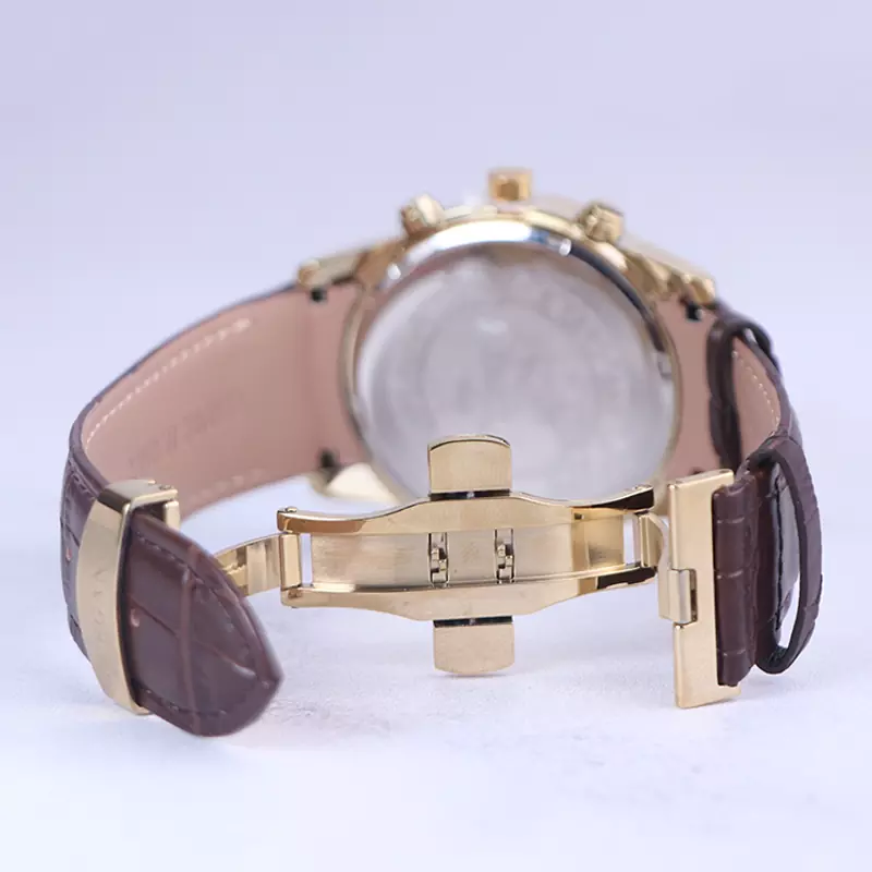 ساعت مچی الگانس مردانه چرم قاب طلایی صفحه قهوه ای G 1191/3