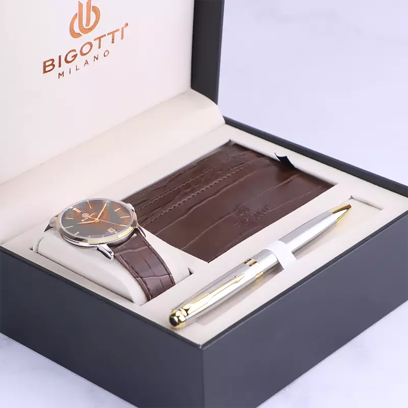 ساعت مچی بیگوتی مردانه بند چرمی قهوه ای BG 1.10422/2
