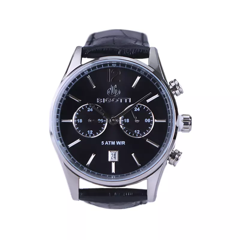 ساعت مچی بیگوتی مردانه بند چرم مشکی قاب نقره ای BG.1.10651/1