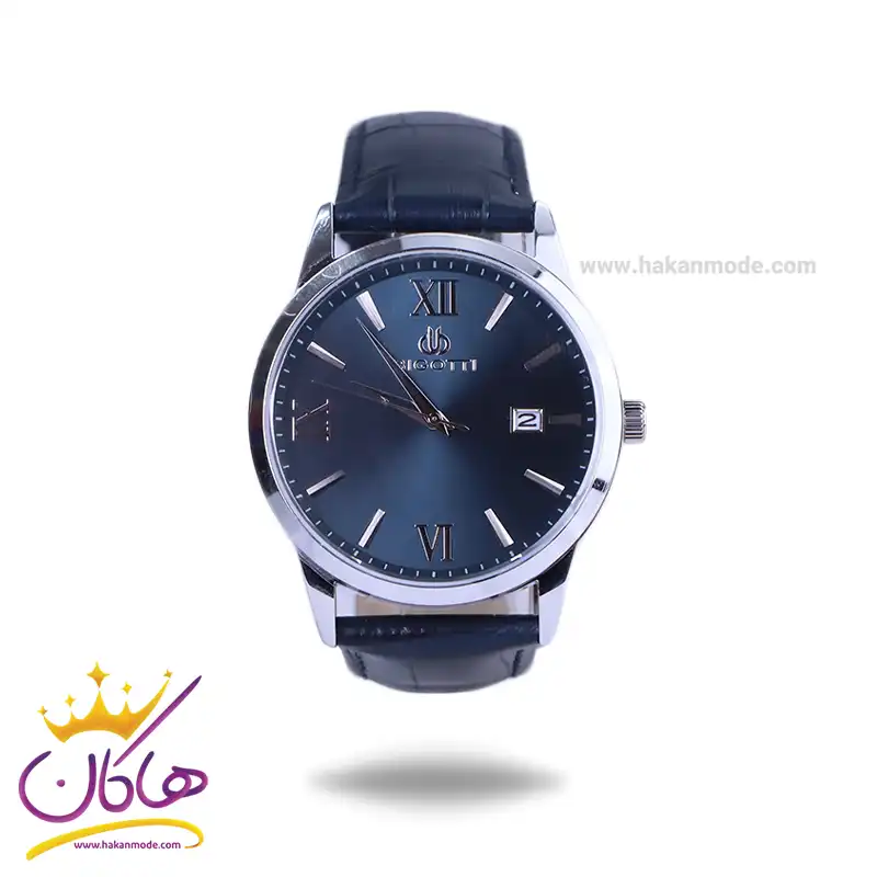ساعت مچی بیگوتی مردانه بند چرم سورمه ای قاب نقره ای BG.1.10614/3