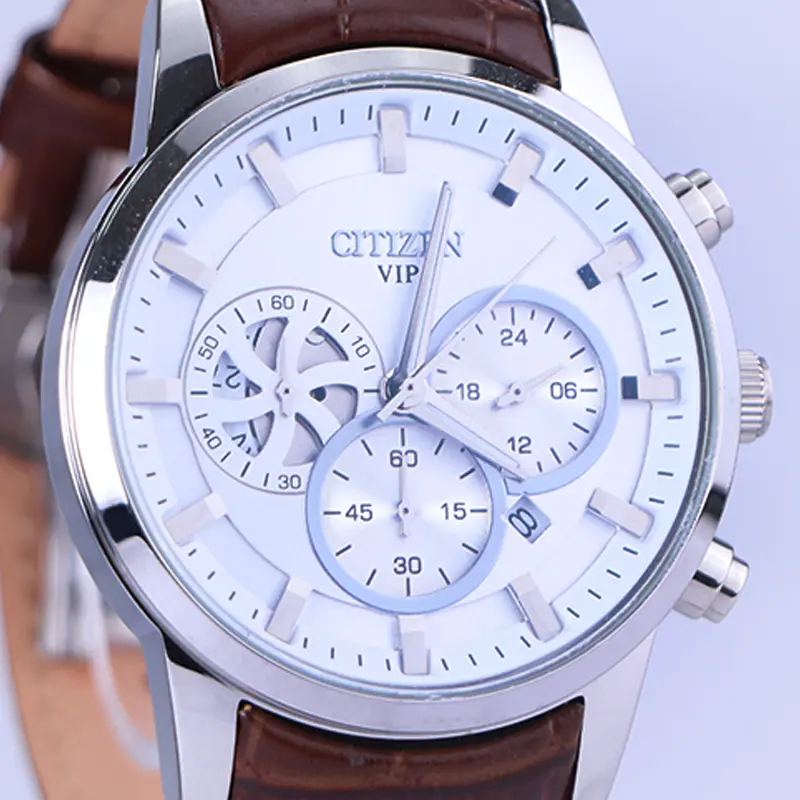 ساعت مچی سیتیزن مردانه بند چرم صفحه سفید کرنوگراف G8111/1