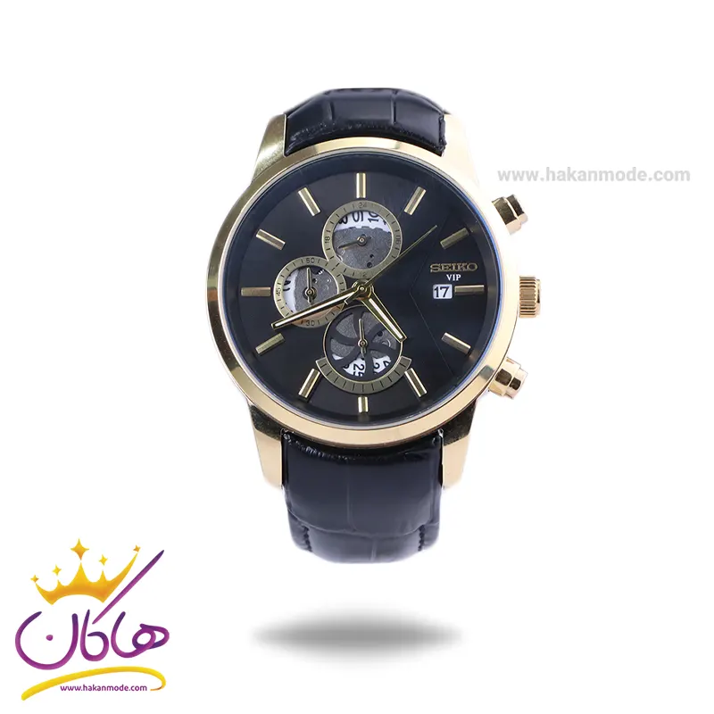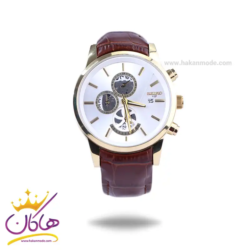 ساعت مچی سیکو مردانه بند چرم قاب طلایی کرنوگراف G9233/15