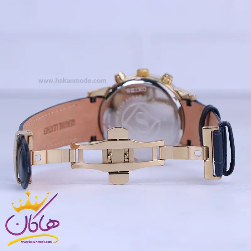 ساعت مچی سیکو مردانه بند چرم قاب طلایی کرنوگراف G9232/3