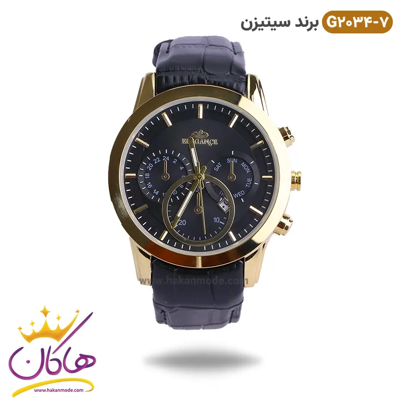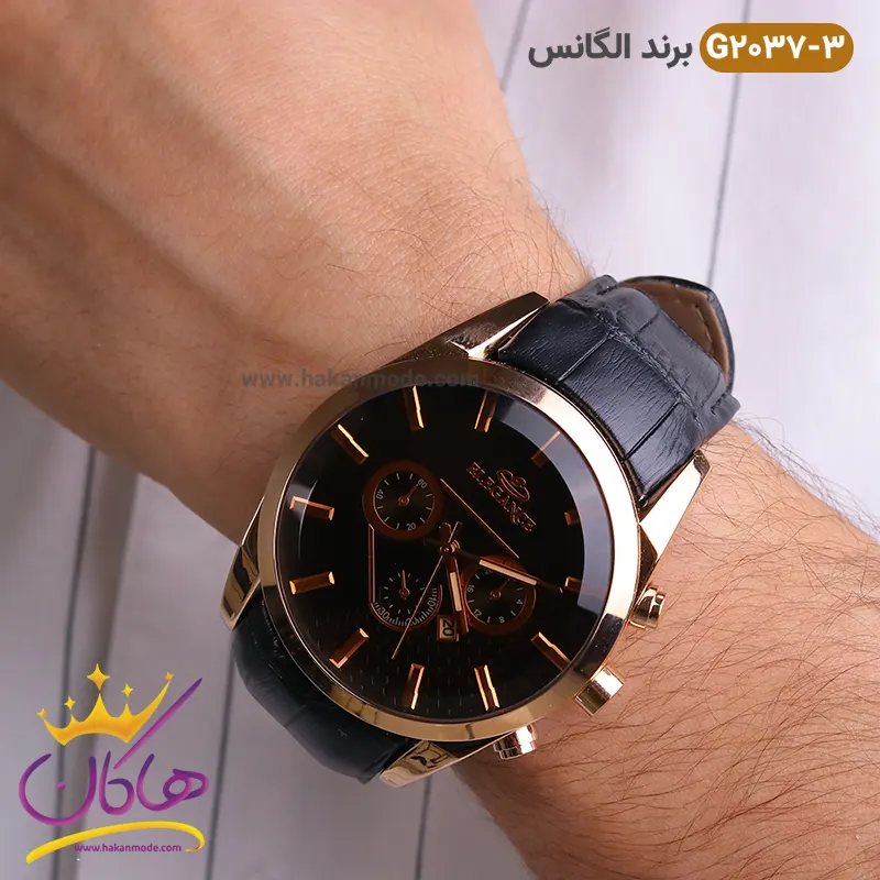 خرید ساعت الگانس مردانه بند چرمی مشکی طلایی مدل G2034 ساعت الگانس مردانه بند چرمی مدل G2034 ظاهری کلاسیک و