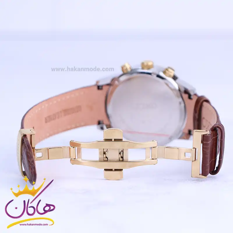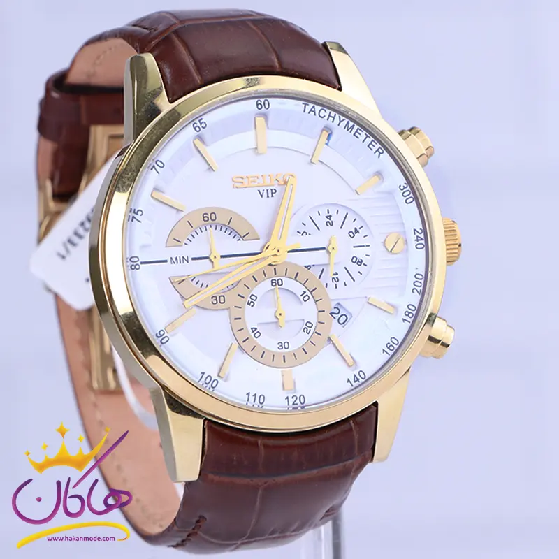 ساعت مچی سیکو مردانه چرم قاب طلایی کرنوگراف G9233/1