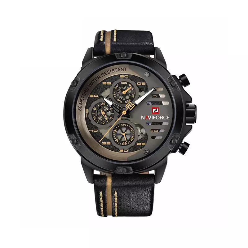 ساعت مچی نیوی فورس مردانه بند چرمی مشکی زرد 9110/11