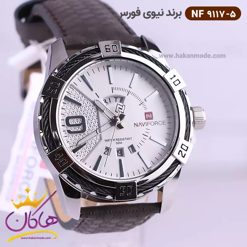 ساعت مچی نیوی فورس مردانه بند چرمی صفحه سفید کد 9117/5