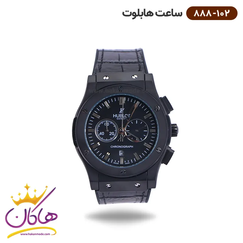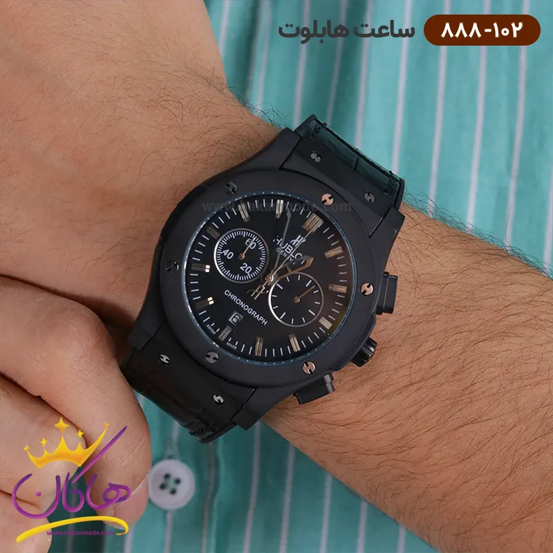 خرید ساعت هابلوت مردانه بند چرمی مشکی صفحه مشکی کرنوگراف 888/102 در خرید ساعت هابلوت مردانه فلزی، توجه داشته باشید
