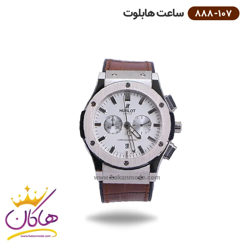 ساعت هابلوت مردانه بند چرم قهوه ای صفحه سفید کرنوگراف 888/107