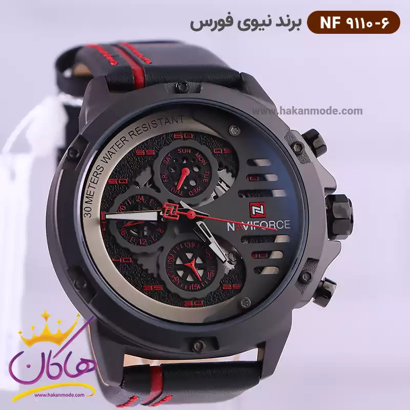 ساعت نیوی فورس مردانه بند چرمی مشکی قرمز کد 9110/6