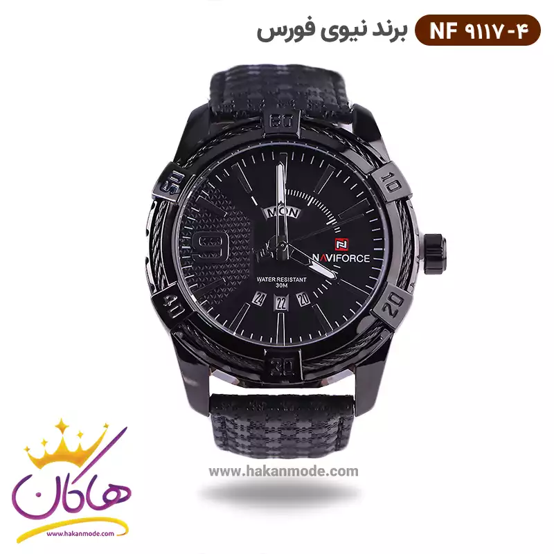 ساعت نیوی فورس مردانه بند چرمی مشکی کد 9117/4