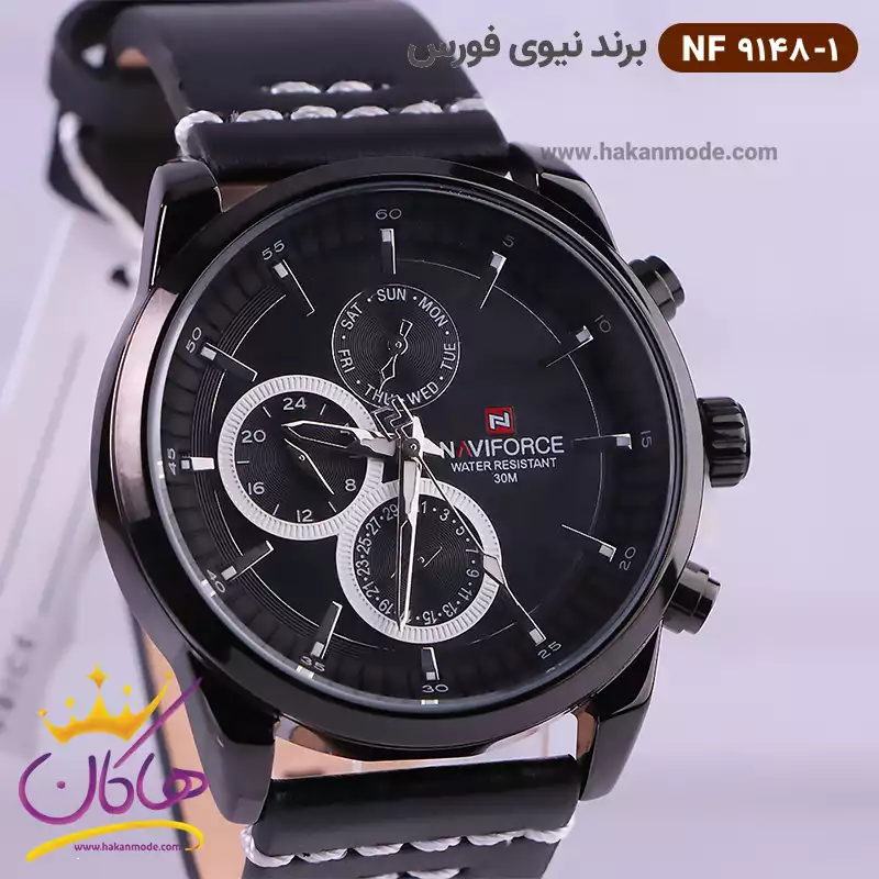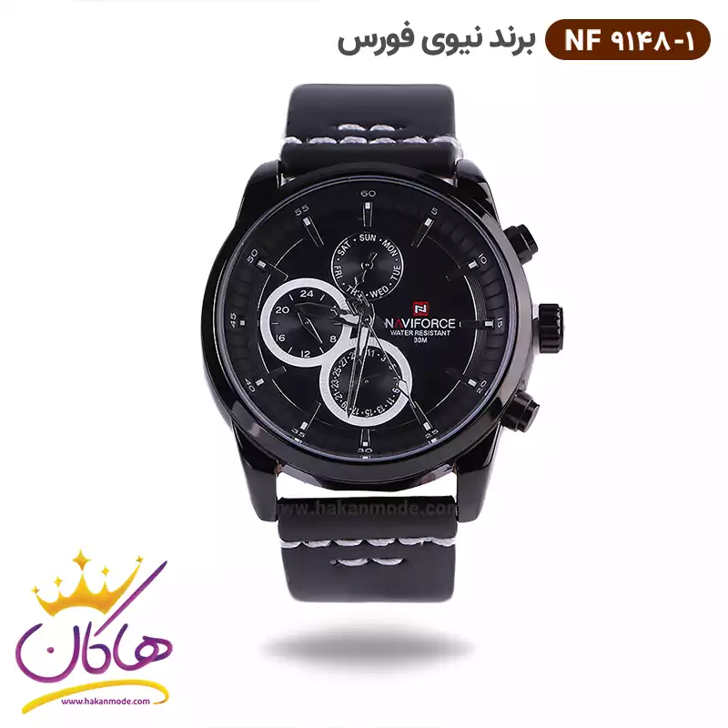 ساعت نیوی فورس مردانه بند چرمی مشکی فول تایم 9148/1