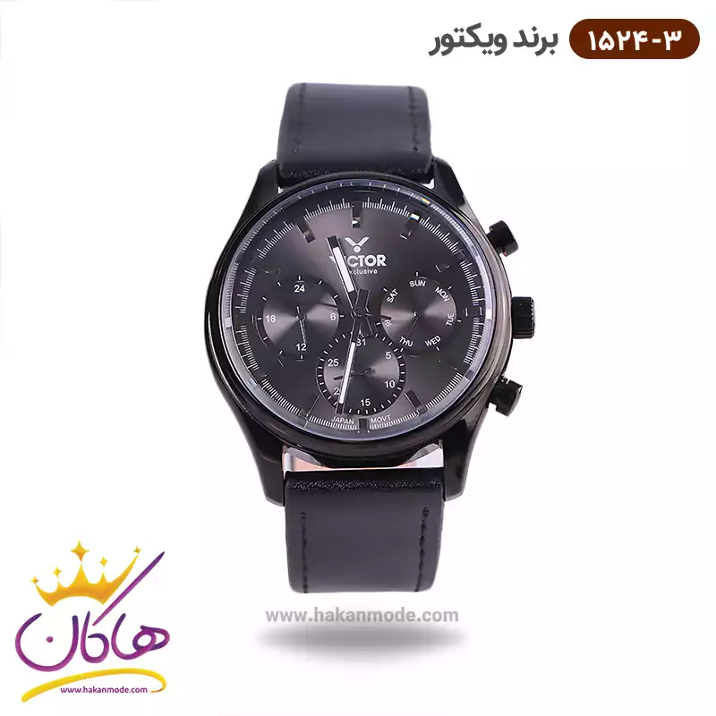ساعت ویکتور مردانه بند چرم مشکی سه موتوره 1524/3