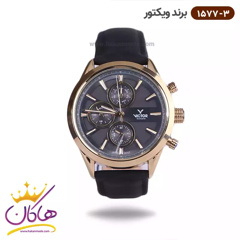 ساعت ویکتور مردانه بند جیر مشکی سه موتوره 1577/3
