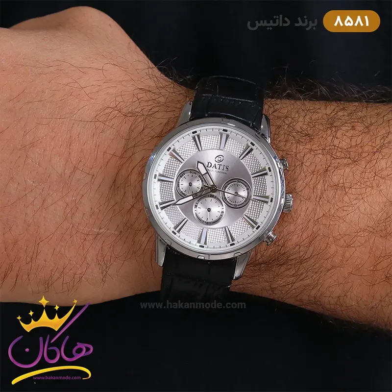 ساعت داتیس مردانه بند چرم مشکی قاب نقره ای 8581/4