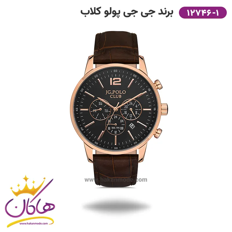 ساعت جی جی پولو مردانه بند چرمی قهوه ای کد 12746/1 دو زمانه