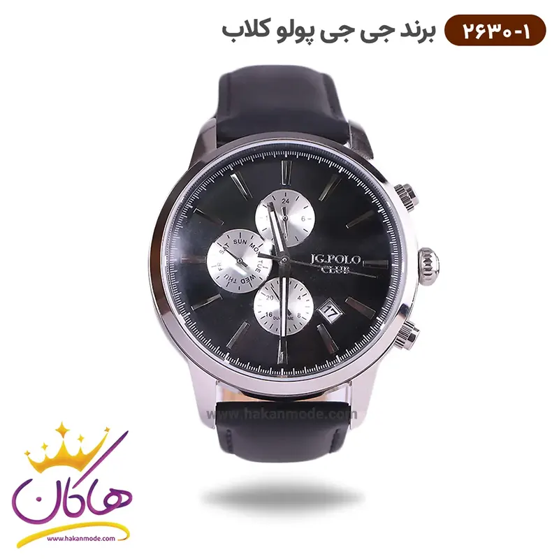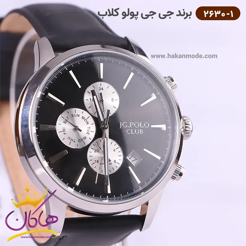 ساعت جی جی پولو مردانه بند چرمی مشکی 2630/1