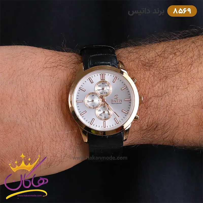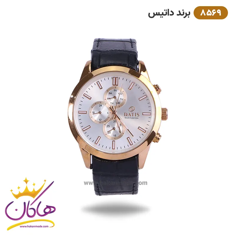 ساعت داتیس مردانه بند چرمی مشکی قاب رزگلد 8569/1