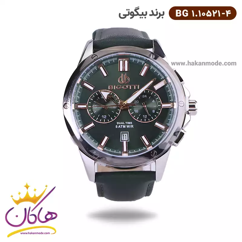 ساعت بیگوتی مردانه بند چرمی صفحه سبز کد BG.1.10521-4