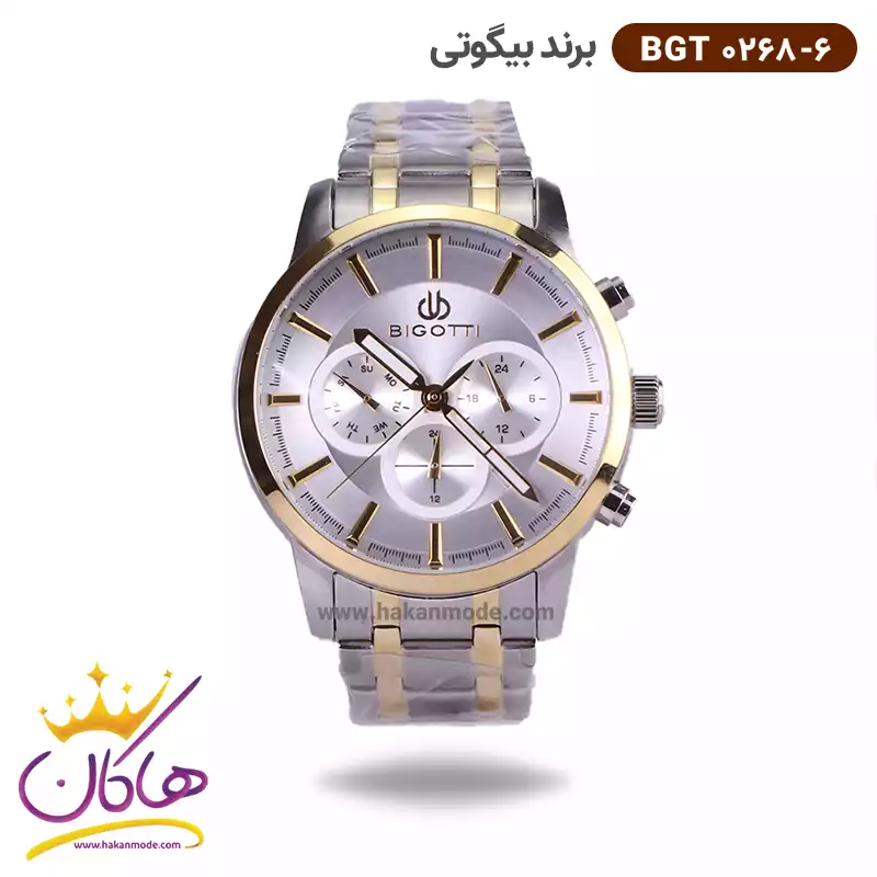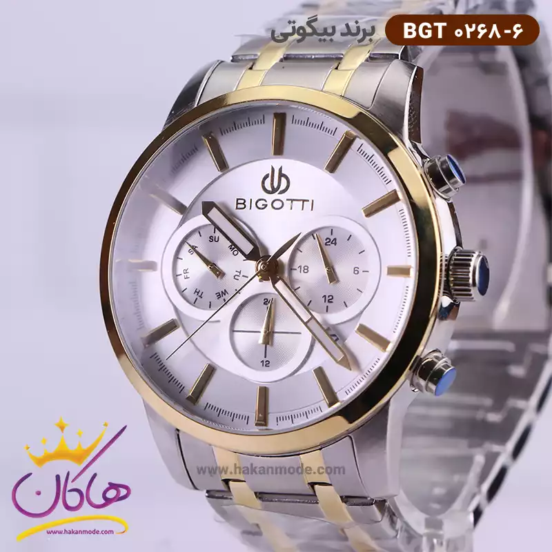 ساعت بیگوتی مردانه فلزی صفحه سفید فول تایم کد BGT 0268-6