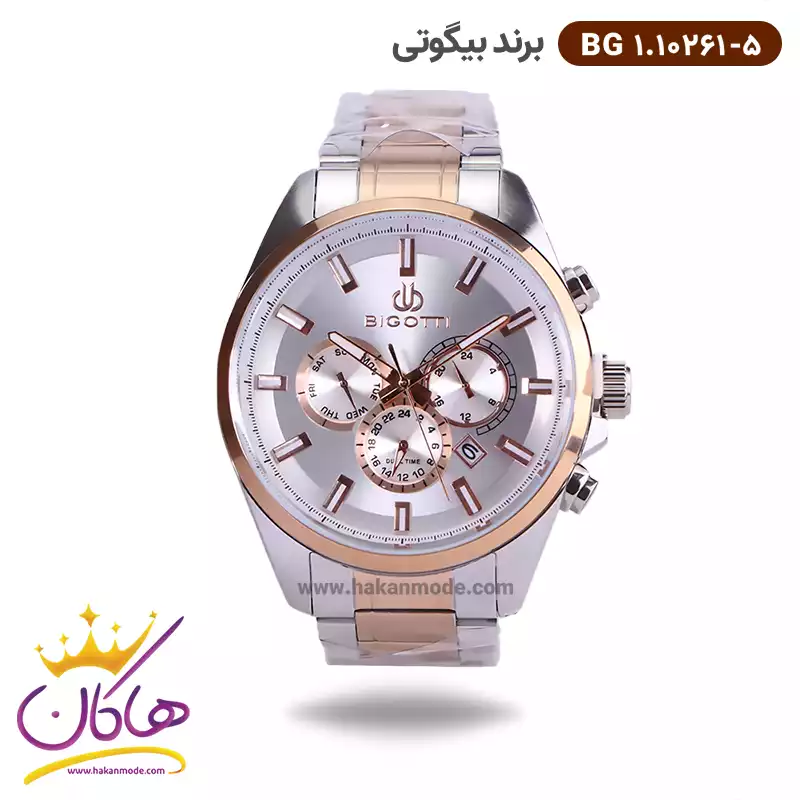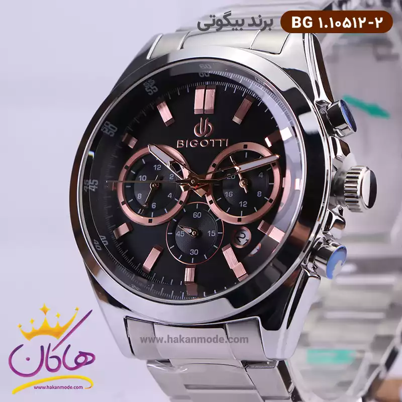 ساعت بیگوتی مردانه فلزی نقره ای رزگلد سه موتوره کد BG.1.10261-5