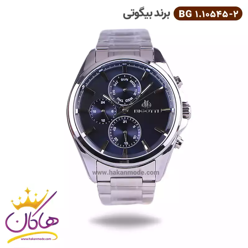 ساعت بیگوتی مردانه فلزی نقره ای صفحه آبی کد BG.1.10545-2