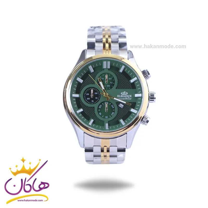 ساعت مچی مردانه الگانس فلزی نقره ای طلایی صفحه سبز 8561/1
