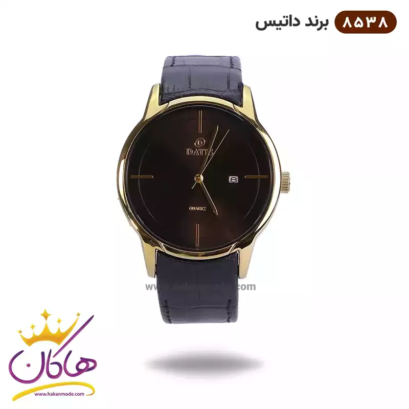 ساعت مچی مردانه داتیس بند چرمی قاب طلایی 8538/7