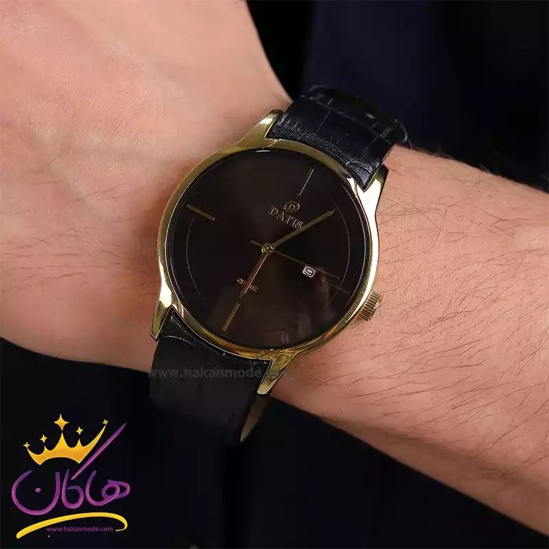 ساعت مچی مردانه داتیس بند چرمی قاب طلایی 8480/1