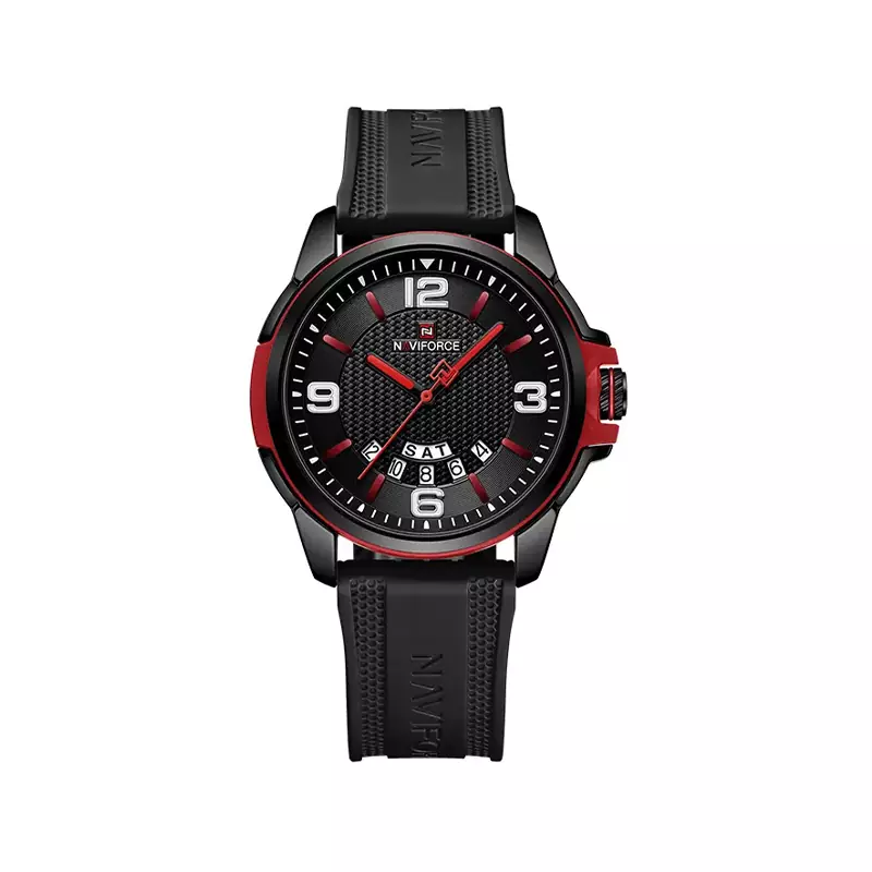 ساعت مچی نیوی فورس مردانه بند رابر قاب قرمز مشکی 9215/4
