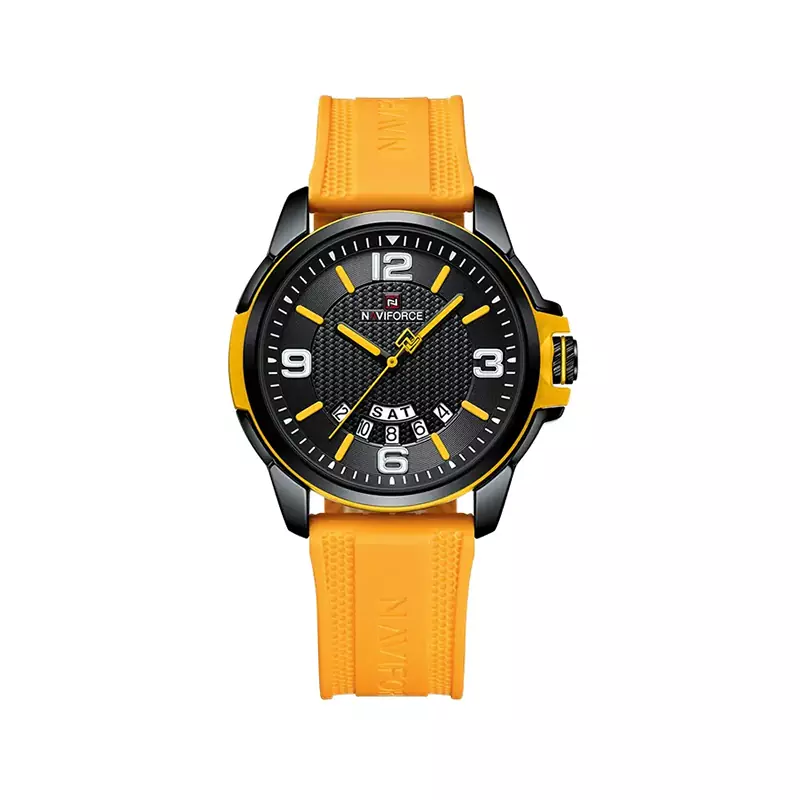 ساعت مچی نیوی فورس مردانه بند رابر زرد قاب مشکی 9215/7