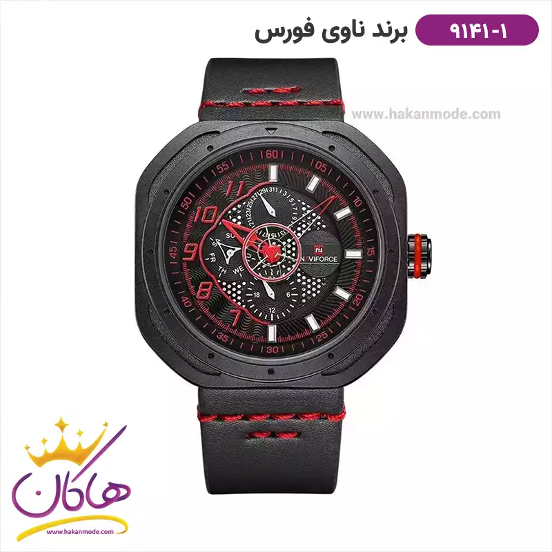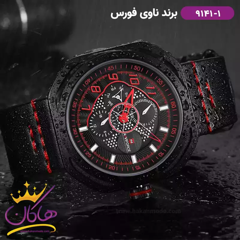 ساعت مردانه نیوی فورس فلزی مشکی قرمز فول دیت 9149/2