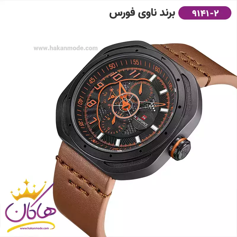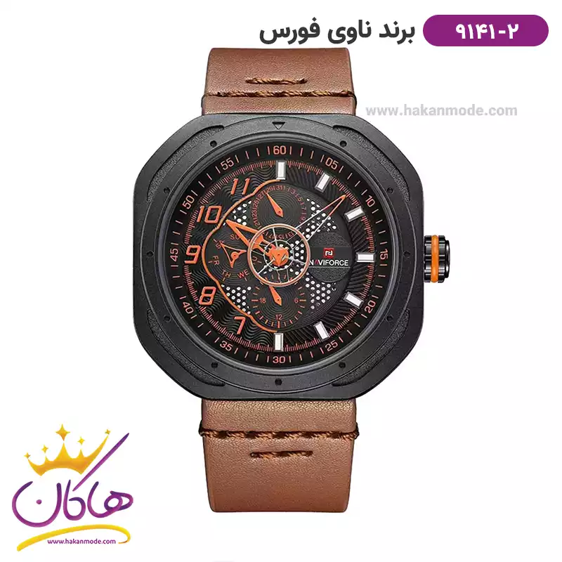 ساعت مردانه نیوی فورس بند چرم قهوه ای قاب مشکی 9156/2