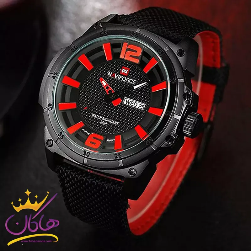 ساعت مردانه نیوی فورس بند برزنت مشکی قرمز 9066/1