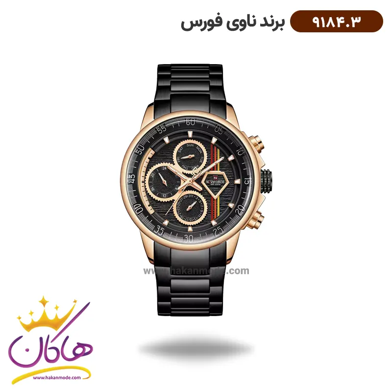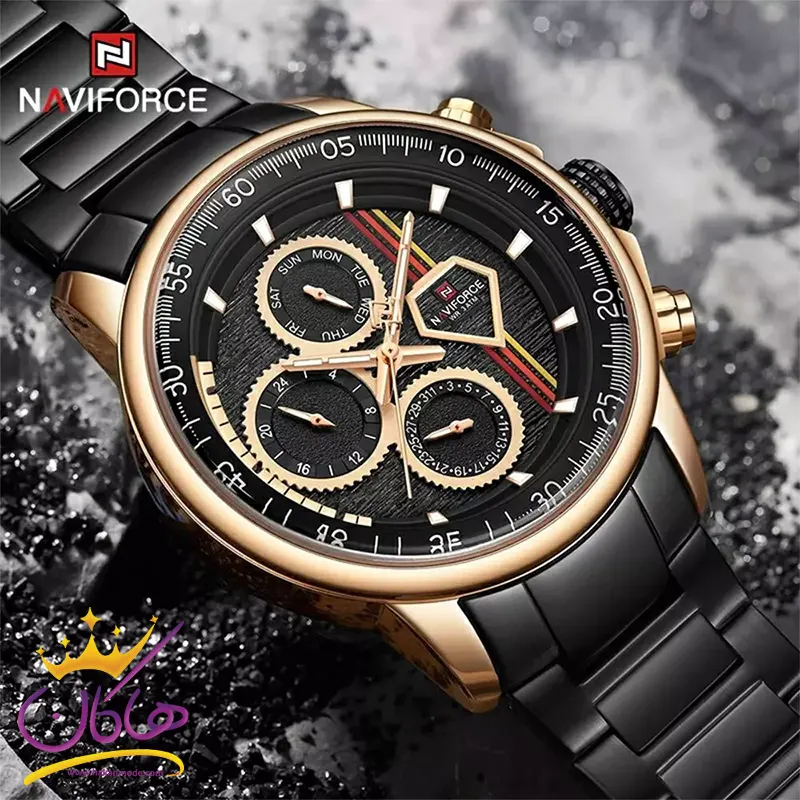 ساعت مردانه نیوی فورس فلزی مشکی قاب طلایی 9184/3