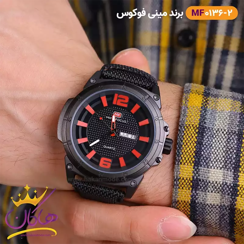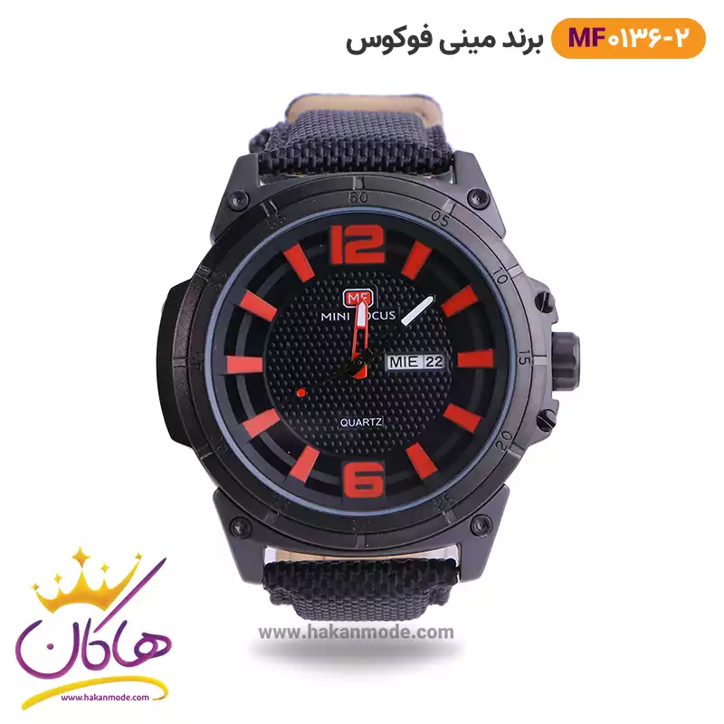 خرید ساعت مینی فوکوس مشکی بند برزنتی اندکس قرمز MF 0136/2 ساعت مینی فوکوس مشکی بند برزنتی اندکس قرمز MF