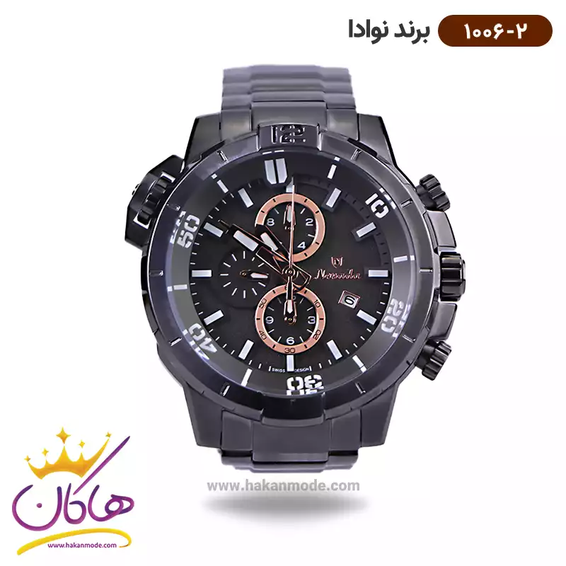 خرید ساعت نوادا مردانه کرنوگراف فلزی مشکی رز کد 1007/3 در خرید ساعت نوادا مردانه فلزی، اورجینال بودن از همه