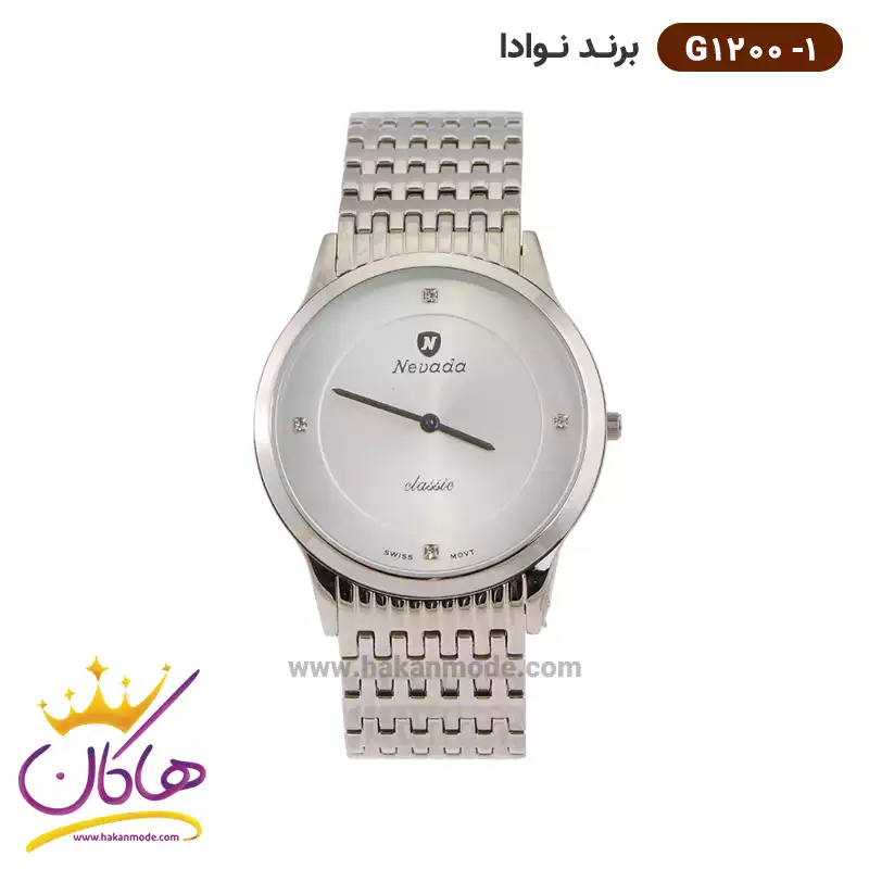 ساعت نیوادا نقره ای ایندکس نگین | Nevada G 1200/1