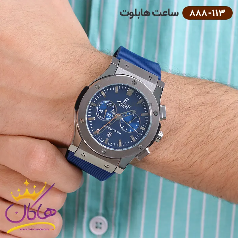 خرید ساعت هابلوت مردانه بند رابر آبی صفحه آبی کرنوگراف 888/113 در خرید ساعت هابلوت مردانه بند رابر، توجه داشته