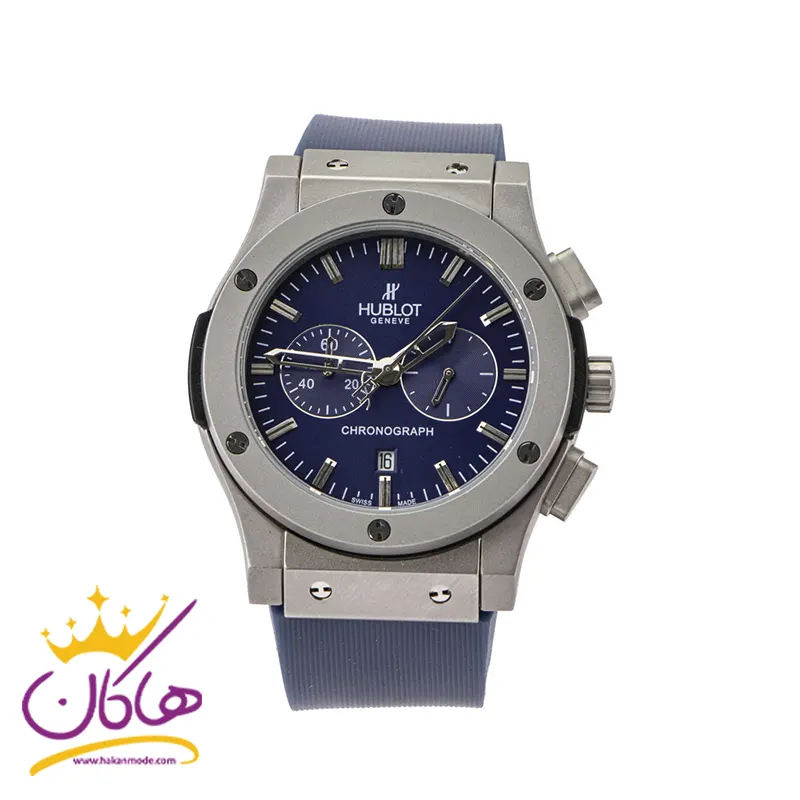 خرید ساعت هابلوت مردانه بند رابر سورمه ای کرنوگراف قاب نقره ای 888/49 در خرید ساعت هابلوت مردانه بند رابر،