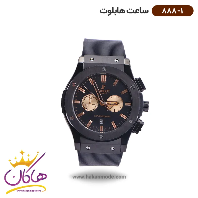 ساعت هابلوت مردانه بند رابر تمام مشکی اندکس رزگلد 888/1