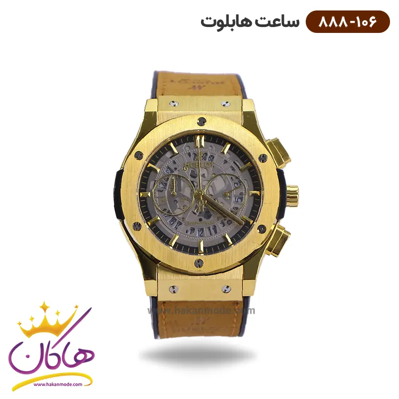 خرید ساعت هابلوت مردانه بند رابر کرنوگراف اسکلتون قاب طلایی 888/106 در خرید ساعت هابلوت مردانه فلزی، توجه داشته باشید